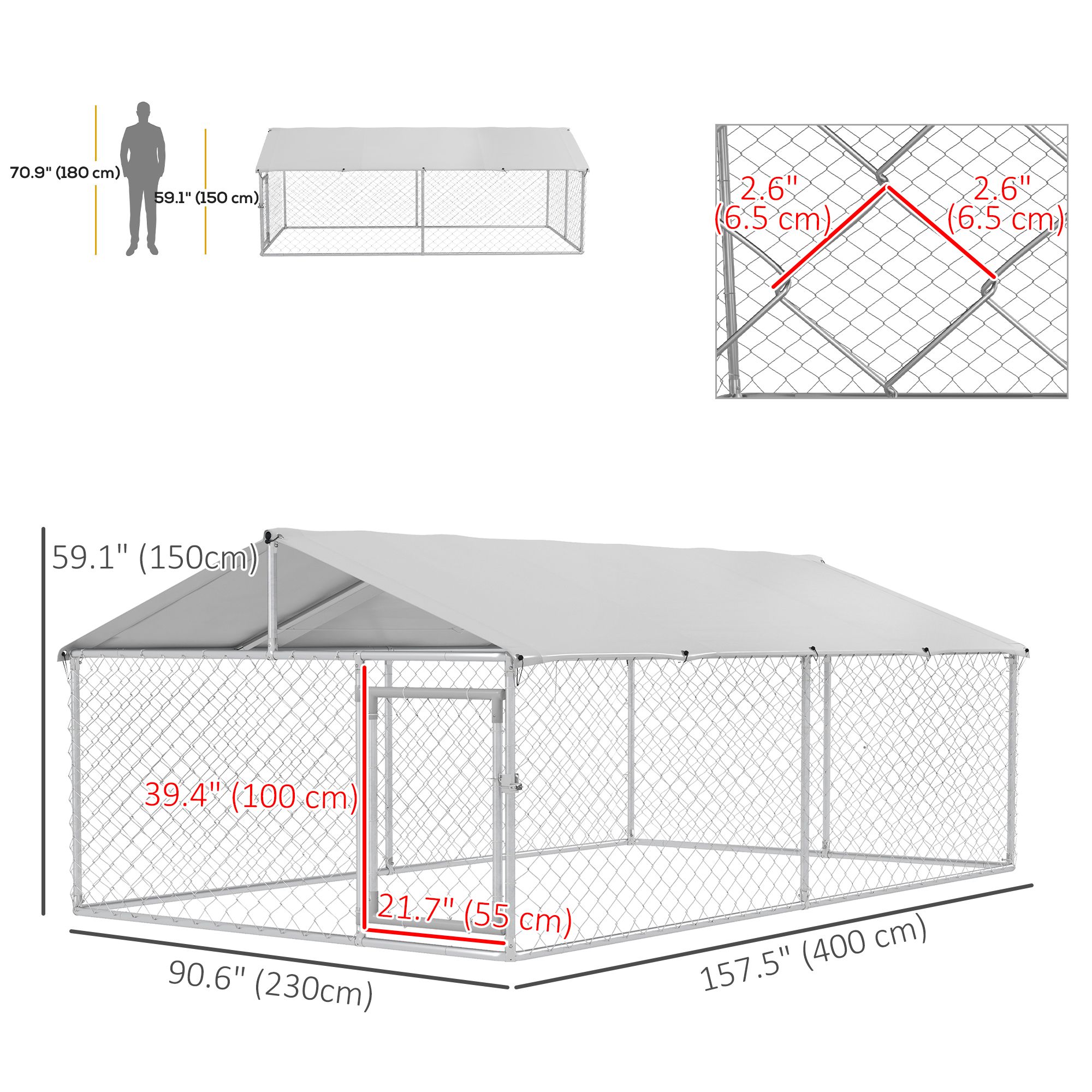 13.1' x 7.5' x 4.9' Outdoor Dog Kennel Dog Run with Waterproof, UV Resistant Cover for Medium Large Sized Dogs, Silver 13.1' x 7.5' x 4.9' Outdoor Dog Kennel Dog Run with Waterproof, UV Resistant Cover for Medium Large Sized Dogs, Silver 13.1' x 7.5' x 4.9' Outdoor Dog Kennel Dog Run with Waterproof, UV Resistant Cover for Medium Large Sized Dogs, Silver
