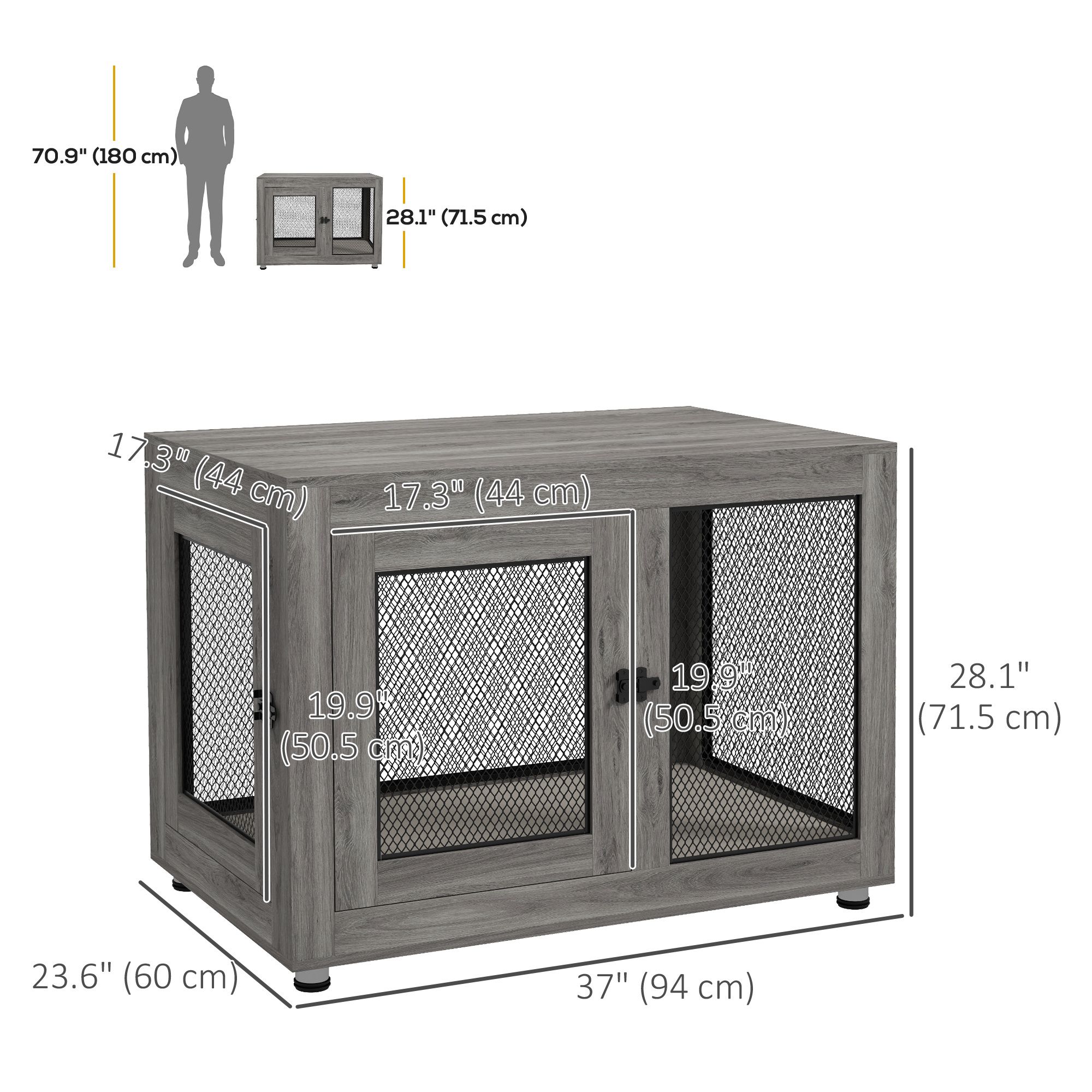 Pet Crate End Table with Water-resistant Cushion or Large Medium Dogs, Grey